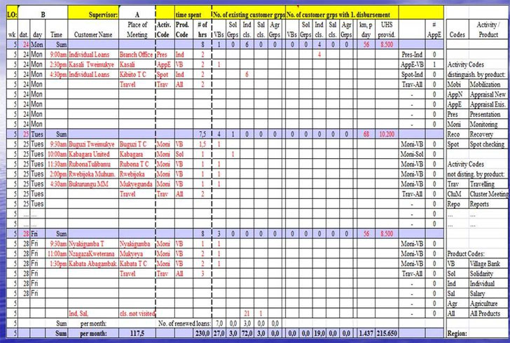 The resulting performance model displays for each loan officer all key influencing parameters per product type such as the average outstanding loan amount per loan and total together with the respective associated margins, monthly loan loss rates, etc. This allows supervisors to analyse conveniently in which way the performance could be improved and to advise their respective loan officers accordingly.