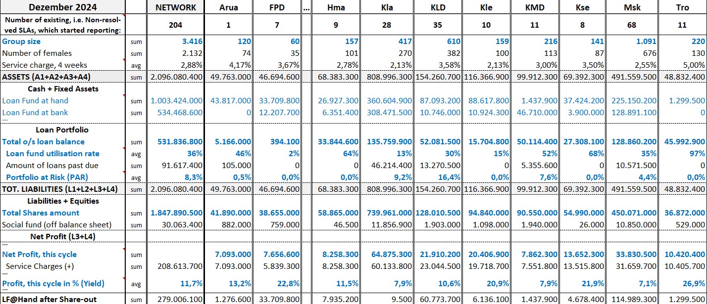 The Deputy record-keeper copies entries from pass-books and notebook (loan fund at hand & bank, ...) into the group’s digital* savings- & loan ledgers and sends it to the regional R-SLA Support Team