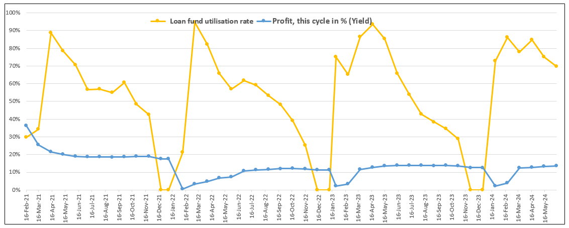 The members save bi-weekly and take or repay loans every four weeks from the savings plus retained earnings fund following