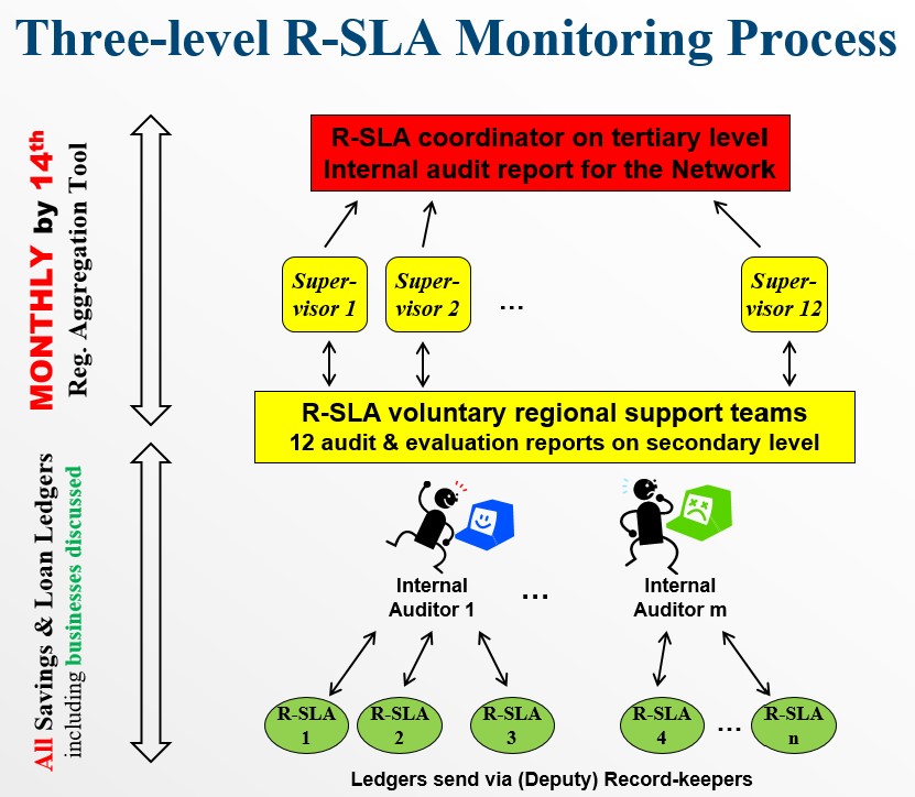 Monthly internal audit, self-monitoring & evaluation on all three levels